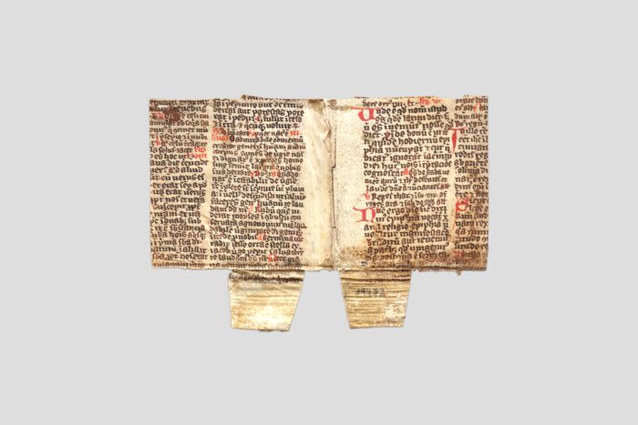 - SimpleSearch: 19472,um 1300,Handschrift auf Pergament,Gotische Schriften, Gotik, Rot, Schrift,Komponenten/Fragment,Visuelle und verbale Kommunikation/Textdokumente/Handschrift,Zwei Buchseiten, fragmentarisch,Two book pages, fragmentary,Europa,Europa,Pergament,Tinte,Handschrift,Ausschnitt aus einem mittelalterlichen Manuskript mit Bindung in der Mitte,Rückseite des Ausschnitts